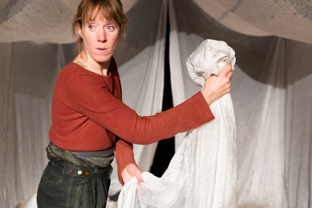 Interprétation Christelle Cornil / Mise en scène Eva Madeira / Adaptation C. Cornil et E. Madeira / Assistanat mise en scène Nathalie Gillard / Scénographie Laure Hassel Construction décor Saoud Mama / Costumes Gaëlle Marras / Assistanat costumes Lucille Streicher / Création sonore et musicale Corentin Piquard / Chorégraphie Justine Electeur Création lumière petite forme Antoine Kurz & Arnaud Favry / Travail préparatoire Nicolas Vandersnickt & Arnaud Favry / Régie générale Dimitri Gillet